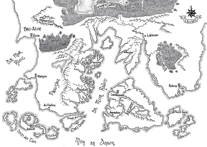 Ur bed leun hud hag itrikoù politikel eo Iaven. Rannet e vez etre ar broioù-se : Rouantelezh Dehouberzh, Rouantelezh Artanez, Dukelezh Kêrsidi, Kengevred ar Voregiz (Bro-Voreg), Kontelezh Enez Doun, Dukelezh Paouglez, Rouantelezh Azoe, Aotrouniezh Inizi an Tan, Rouantelezh Korrien ar Meneglas, ha Gweglann (Bro ar Ramzed). Da bellgargañ amañ.